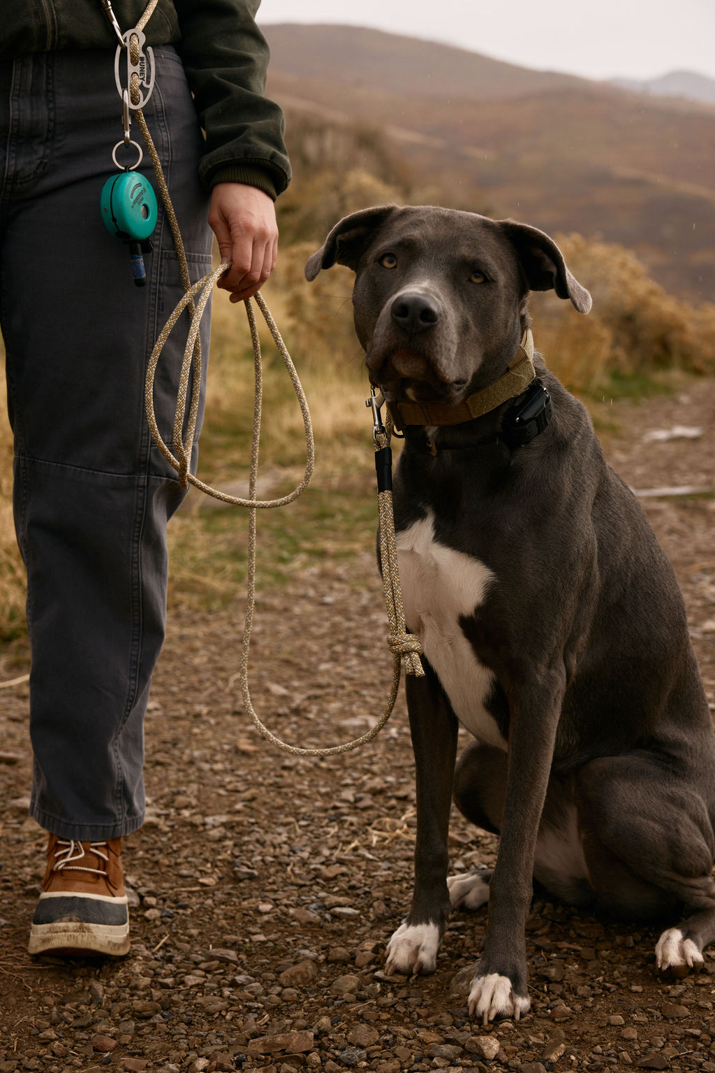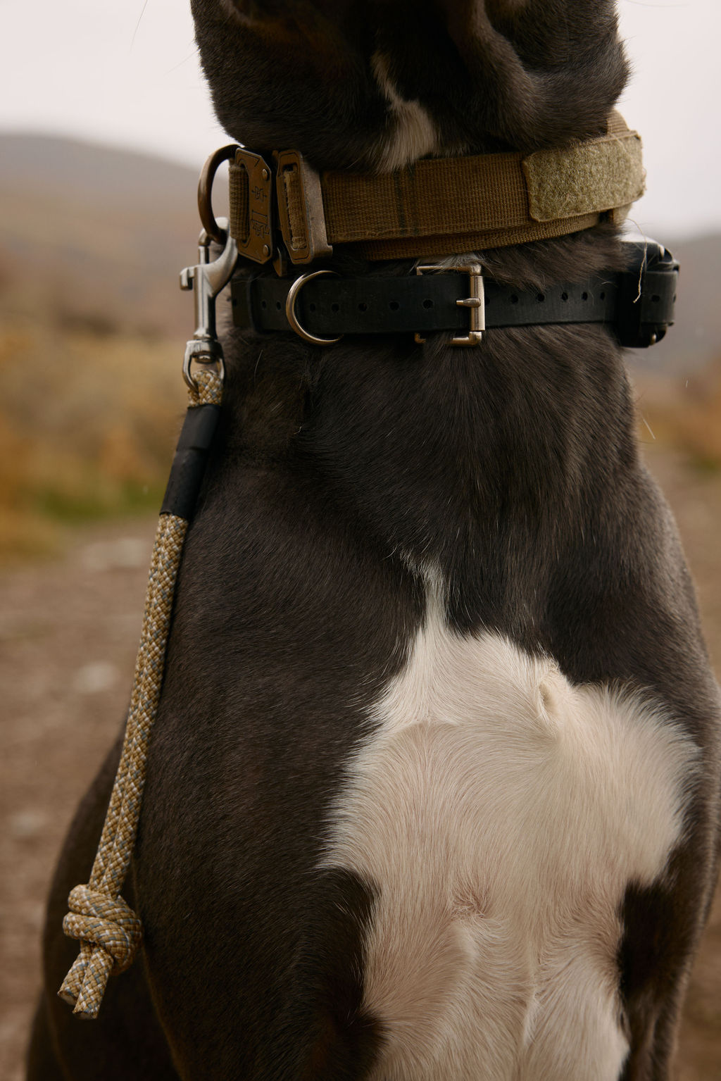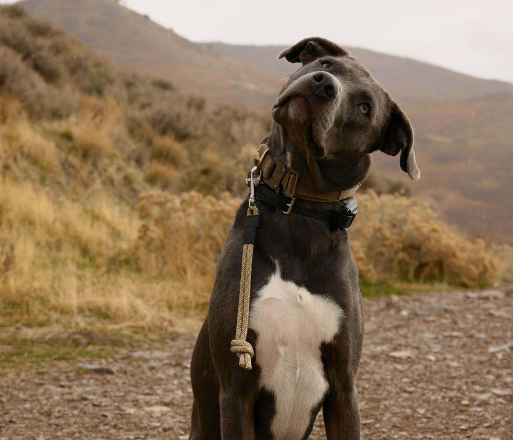 Built with our signature climbing accessory rope and finished with a stainless-steel swivel clasp for smooth, secure movement. The knotted end gives you an easy, tactical grab point, while the closed loop stays tight to the collar to help prevent paws from slipping through.