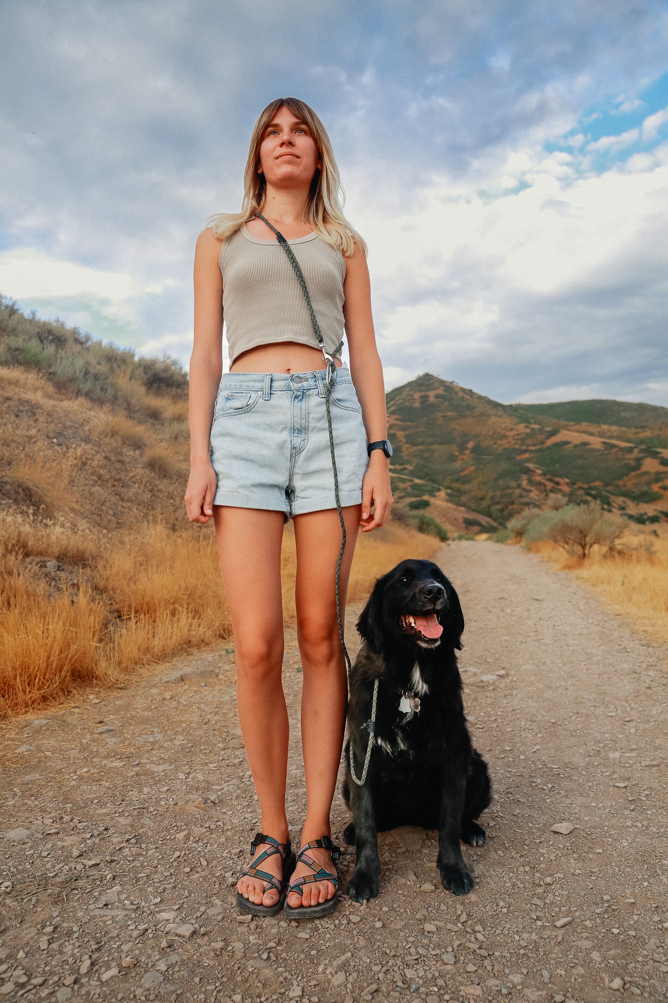 To estimate hands-free fit, measure from your shoulder to opposite hip, double it, subtract that from the leash length, then subtract your dog’s neck circumference. What’s left is your walkable leash length.